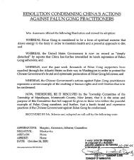 因此,现在,新泽西州,蒙茂斯郡曼纳拉潘市政府议会决议,全力支持以和平的法轮功修炼者为楷模的人们,并进一步谴责中国政府对法轮功的野蛮镇压与迫害行为。