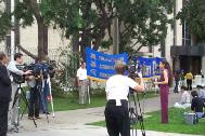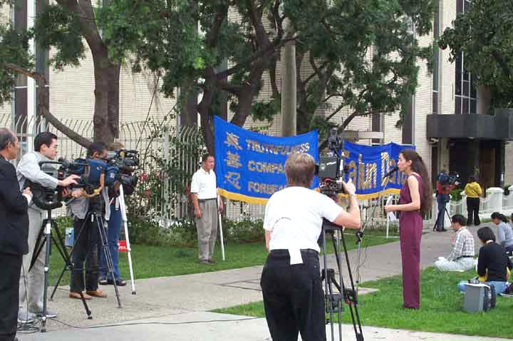 得知西方法轮功学员在天安门广场请愿而被拘押的消息后,包括ABC,CBS,南加州大学等四、五家电视台,和中国日报,台湾日报,越华报等多家当地中英文媒体迅速赶赴现场进行了采访。