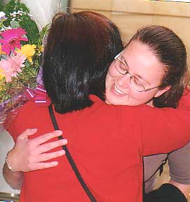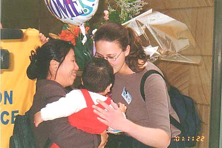 泽农与来迎接他的母亲、父亲、朋友们紧紧拥抱。