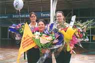 近60名加拿大多伦多大法弟子和数家中西文媒体在机场迎接泽农的归来。当泽农步出候机室时,在场的所有人报以热烈的掌声,一束束鲜花,一张张慈悲的笑脸,向震撼寰宇、令天地动容的实践这一伟大壮举的大法弟子致以最崇高的敬意。
