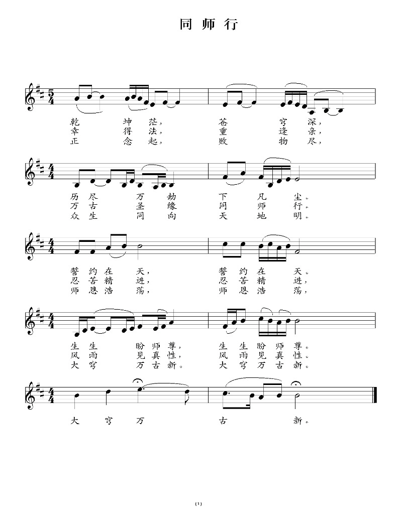 | 同师行 乾坤茫,苍穹深, 幸得法,重逢亲, 正念启,败物尽, | 过关 人间自古行路难, 千古缘,一线牵, |