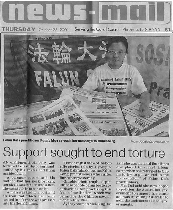 悉尼一名修炼法轮功的妇女说,当她返回中国想要阻止这场对法轮功修炼者的镇压时,她被逮捕过4次,并被投入一个条件极差的劳教所中。