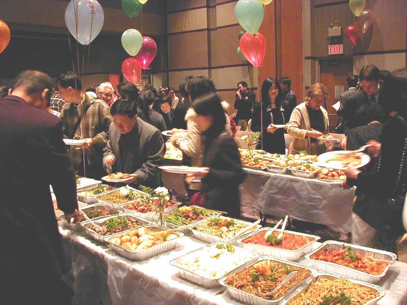 晚会是自助晚餐形式开始的。50多道不同品味丰富多彩的菜肴令人们目不暇接。嘉宾们品尝着中国食品,看着大法弟子慈悲、善良的笑脸,完全融入到这一片祥和之中。