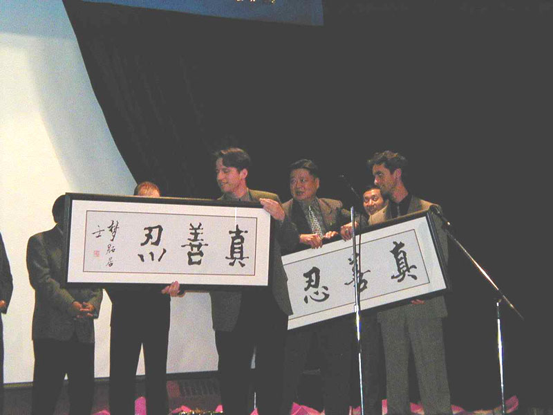 两位去天安门正法的西人学员的感人肺腑的发言赢得全场热烈的掌声,一位华人社区侨领特意制作两块“真善忍”匾额,赠送给前往天安门正法的两位多伦多西人学员。