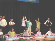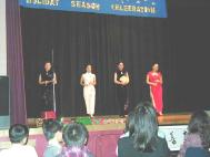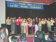 由多伦多明慧学校小弟子们五套功法的演示拉开了演出的序幕。台上小弟子在慈悲的大法音乐声中展示着宁静与优美的动作。他们中最小的孩子只有3岁,接下来是钢琴独奏,乐曲悲壮委婉,寓意深长令在场的人们回味良久。一名大法弟子演唱“同师行”,全场为之动容,掌声表达了人们的心声。整个晚会节目轻松、祥和、热烈、慈悲、台上台下融为一体。舞蹈,山东秧歌,京剧清唱,古筝演奏,舞曲,中国旗袍表演(这是四名学员利用半天时间排练的。),一名记者临时决定与大法弟子同唱“渴望”。最后,数十名大法弟子登台,同唱一曲“得度”,将晚会推向高潮。