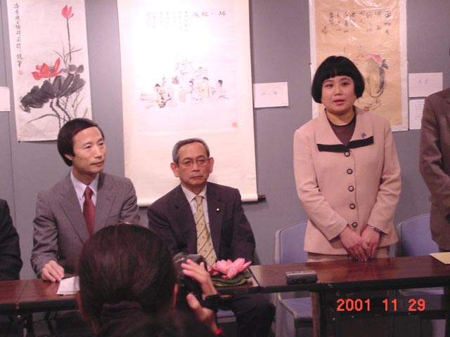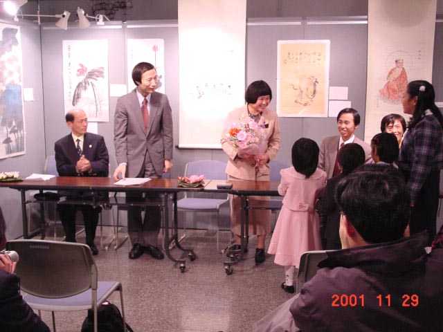 会长广濑茂久先生接着议员的开场白,表达了对媒体的感谢。接下来会长把话题转到这次活动的中心人物,被邀请的来宾、澳洲画家、法轮功学员章翠英女士身上。他介绍章翠英自幼有绘画天赋,在几位中国著名画家的熏陶下而成为如此出色的画家。他说,在他看来,她今生象是为绘画而来,她的画是她心灵的结晶。之后他介绍章翠英因患严重关节炎不得不停止她的绘画,就在她对人生丧失信心的时候,幸运地结识了法轮功。仅仅7天就奇迹般地痊愈了。然而在法轮功遭到迫害时,为了一句公道话竟遭到了8个月的迫害。他请章翠英为大家介绍她的受迫害经历。