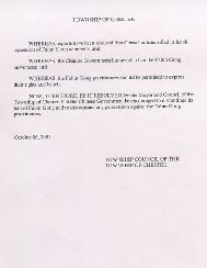 新泽西州柴思特(Chester)市通过的决议全文如下: