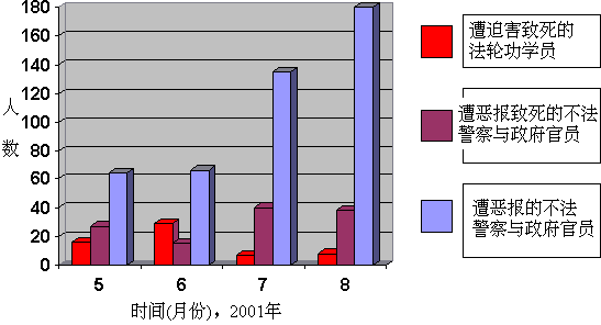 在最近四个月,因自己的恶行而遭到恶报的警察与不法官员的不完全统计数据如下图,同时列出了相应月份因遭受这些不法警察与官员迫害致死的大法弟子人数。被迫害致死法轮功学员人数即便按照中国政府内部统计的1000余人,警察的伤亡人数也是成倍的。三尺头上有神明。自古欺侮修炼人者必遭恶报,害死大法弟子者更是罪大如天,害己至极,只怕恶报来得不快不爽!望不明真相者戒,勿以身试法、重蹈他人覆辙。