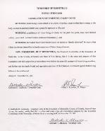 我,Gertrude H. Atkinson,新泽西州摩利丝(Morris)县蒙特维尔(Montville)市议会秘书,证明:以上为蒙特维尔(Montville)市议会在2001年11月27日举行的大会上通过的真实、准确的决议案文本。