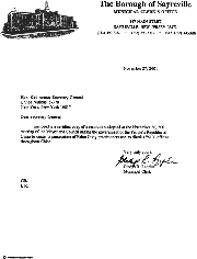 我, Gladys R. Rzepka, 赛瑞维尔市书记员,证明以上为市议会于2001年11月26日举行的市长和议会的大会上通过的真实的决议案文本。
