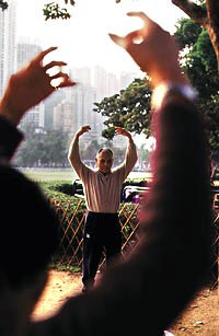 法轮功成员在香港维多利亚公园,约翰.史丹梅尔为时代杂志摄