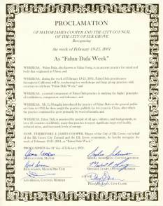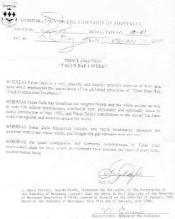 鉴于我们相邻的地区及整个社会受益于法轮大法,法轮大法自一九九二年五月公开传出以来,在世界范围内使一亿人身心受益。法轮大法对社会的贡献已被广泛认可,并在世界各地受到嘉奖。