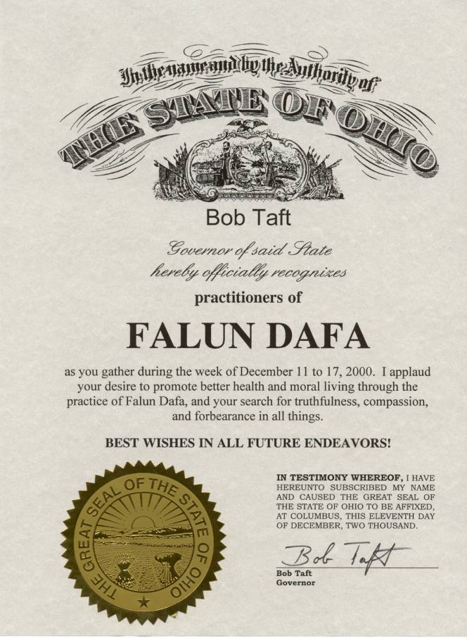 在你们2000年12月11日到17日聚会的这个星期里,我赞扬你们通过修炼法轮大法提升道德和健康,以及你们在任何情况下追寻真、善、忍的原则。