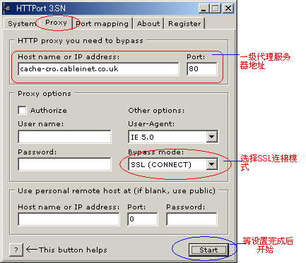 注意,这里的SSL不表示连接是加密的!设置完后一定要用能对URL和内容都可以加密的二级代理才能保证安全。