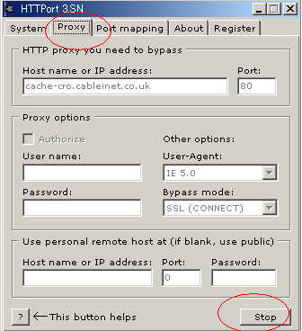 *安装下载的httport3sn.exe,然后在运行时先会弹出一个窗口,讲解功能,可看后选择CLOSE 就可以进入设置界面如图(1)