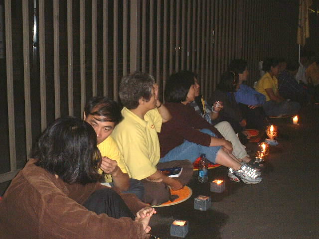 闪烁的烛光在“普度”、“济世”的音乐声中显得更加肃穆、沉重,过往的车辆和行人都被这庄严的场面所震撼,愿人们的良知善念得以启发,愿天下有缘人得闻大法。