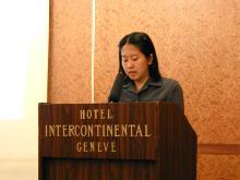 会上大法学员讲述了自去年联合国人权会议通过“不动议”决议以来,至今又有170多位大法学员在中国的监狱中被虐待致死。通过幻灯片,学员们介绍了被酷刑折磨致死的三个弟子的事例,其中包括一位年青的母亲和她的仅8个月的孩子。会中,65岁的徐女士(一位来自中国大陆的大法弟子)讲述了她在中国监狱里受到的迫害。她两次被强行灌食,两次被过电,在非人的虐待中她被折磨得昏迷长达一天半之久。尽管如此,她仍然没有放弃自己的信仰。另一位大法弟子蒋女士的证词进一步揭露了江泽民犯罪集团对大法学员及其亲友株连迫害的罪恶行径。