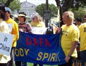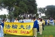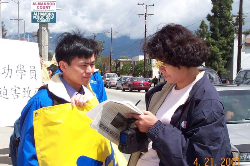 位于洛杉矶东面的圣盖博谷是南加州最大最著名的华人聚居地区。大法弟子经常在这一带集体练功,散发资料,向世人说明真相。4月21日,近70位大法弟子带着报纸、资料、标语横幅,在这里举行游行,纪念4.25两周年。