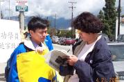 一位路过的墨西哥人听学员讲述了法轮功在中国遭受的迫害,表示非常不理解,并说以后要来参加练功。