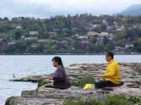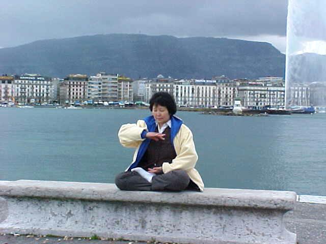 【明慧网2001年4月24日】(一) 日内瓦是一个美丽、和平的城市,每天吸引世界各地的游客来观览,法轮大法弟子也因呼吁信仰自由、呼吁人权从世界各地来到日内瓦洪法。这些天以来,在日内瓦的湖岸大道上可见三三两两的大法弟子在炼习法轮功功法,他们的到来吸引了当地居民和外来游客的注意。一些居民、游客开始向大法弟子了解法轮功,并且向弟子索取大法资料。尤其引人注目的是,一条伸向湖内的长堤上也有大法弟子在炼功,他(她)们面对大湖、静静地炼功,如此宁静祥和,吸引了更多游客;一位摄影师赶紧用支架撑起摄影机捕捉这一奇逢的镜头,他一直在陶醉的观看著,游客也纷纷止足观看,赞叹著:这就是法轮功。法轮大法弟子融合入宇宙大法---真、善、忍之中,构成了人世间最美最好的风景。(休士顿大法弟子报导)