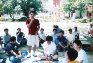 上午就在大家热烈地交流了校园内洪法与各自学校发展概况中不知不觉地过去了。下午就在看完了录像带「自焚疑案」与「出家人篇」后,大家紧接着上午的交流,并将主题移往心性修炼部分。由于大学生大多未接触事业或社会,所以大多谈及学业或一些个人名、利、情方面的过关;也有男女朋友之间谈如何摆正修炼与生活的关系;另外亦有几位学员也谈到了自己过去的得法经过与大法修炼的切身经验;当然也有些学员谈了如何将自己的思维由感性升华为理性的体悟以及如何摆正学法与炼功的关系等问题。就在学员间祥和与热烈地气氛中讨论交流最后亦是意犹未尽地结束了。