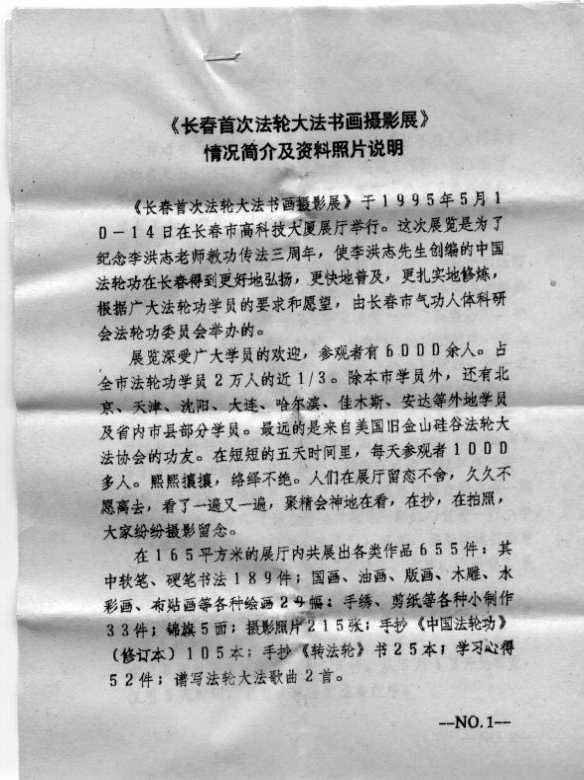历史回顾:《长春首次法轮大法书画摄影展》情况简介
