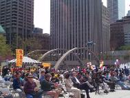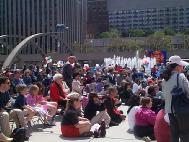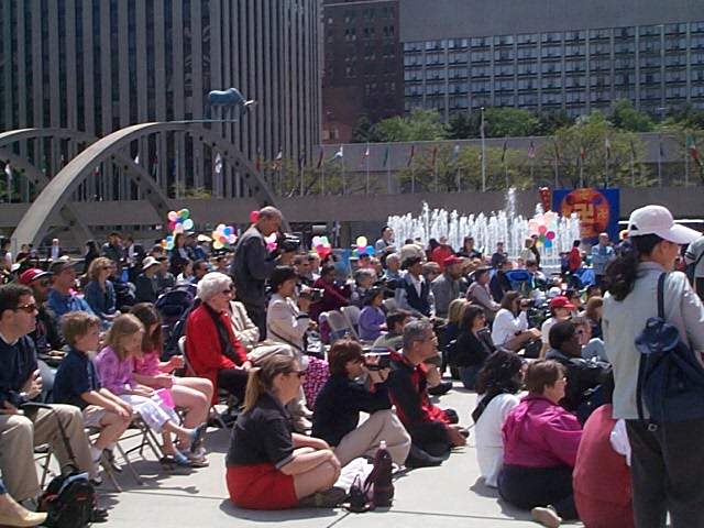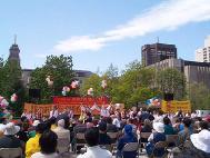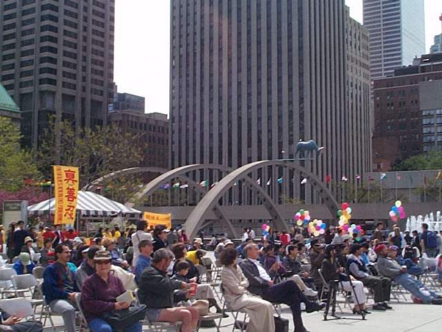 今天的世界法轮大法日本是普天同庆的神圣时刻,怎样把自己得到的无价财富让更多的世人来分享,让他们也能找回真我,获得永远的幸福是每一个法轮功学员想得最多的一个问题。多伦多广大的法轮功修炼人为此特意在这一天,在市政广场举行了庆祝世界法轮大法日及多伦多“真、善、忍”日的大型庆典活动,将环宇欢庆的喜悦带给广大的加拿大民众,让他们在分享我们的平和、真诚、温馨的同时,将真、善、忍的理念植入自己的心灵深处,给他们的未来埋下希望的种子。