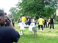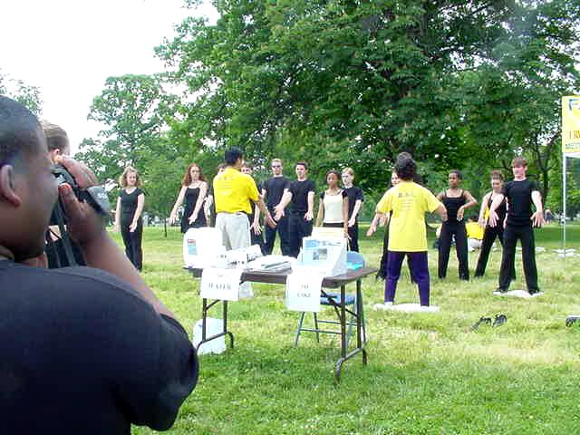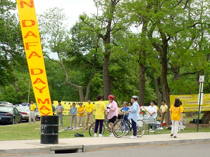 “风筝节”五月十二日(周六)举行,游人逾万。一大早,圣路易学员和哥伦比亚部份学员三三俩俩先后聚集在森林公园(Forest Park),搭帐篷,挂横幅,发资料,讲真相,伴随着风筝节的开始,我们的弘法也有声有色的展开。