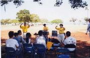 九点三十分左右,陆续来了很多人。有的在看图片展览,有的询问一些大法的情况。图片展览共为四部份:一,大法介绍;二,外界褒奖;三,大法在中国的现状;四,图片集锦。大法弟子热心地为前来感兴趣的人们介绍大法,回答他们的问题。九点四十五分左右,我们为大家播放了“自焚案” 和“法轮大法真相” 录像片。十点四十分,录像放映完毕,一些学员为大家演示五套功法。一西人学员在旁为大家讲解功法。大家纷纷站起来跟着学炼,十分投入。一些学员为大家纠正动作。并不断有人前来观看,索取资料。