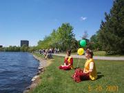在公园附近,假日直通车车站对面草坪上的一幕,令人难以忘怀。一名来自滑铁卢的女学员,打着庄严神圣的手印,同时发出强大的正念之场。普度的乐声在空中久久回荡,在场的无数行人都看到了这感人至深的一幕。
