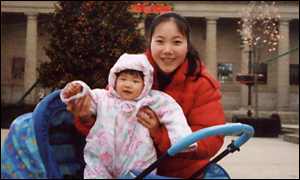 她的护照被没收了,她的女儿变成无国籍。这个家庭现在申请政治避难。(英国广播公司2001年05月08日 格林尼治标准时间17:15北京时间01:15发表)
