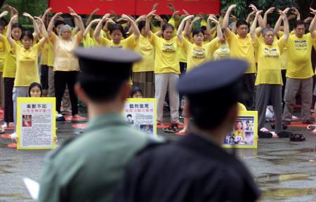 法轮功学员于下午二时许,冒雨前往西环中联办大楼外集体练功请愿,要求北京停止镇压法轮功。稍微学员向中联办递交请愿信,但遭拒绝。最后,示威者把请愿信放在中联办门口后离去,并于三时半前往中环遮打花园继续练功抗议。 该批学员在遮打花园练功时,同时展示一批声称在大陆受迫害虐待学员的照片,以及一个张贴了二百三十三名声称被迫害致死的法轮功学员照片的花牌。 香港法轮功发言人简鸿章表示,大陆法轮功学员被迫害情况令人忧虑,自一九九九年七月至今已有二百三十多名法轮功学员被迫害致死,而且手段残忍。他希望北京当局进行彻查及处罚迫害法轮功的官员。
