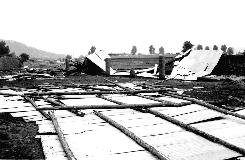 6月26日晚8时,8级暴风夹着骤雨突袭平谷、顺义、密云三地,给当地造成较大的经济损失。图为一养殖户家的40间牛舍大棚被掀掉。
