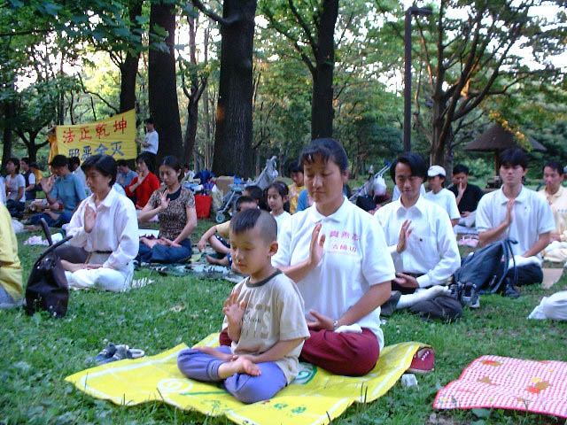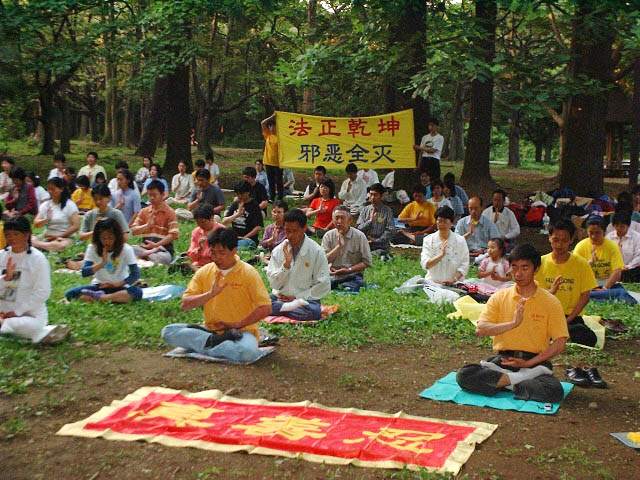 2001年6月3日星期日,来自关东地区的120多名日本大法弟子汇集于东京代代木公园,集体炼功,学法,并于晚上北京时间17,18,19整点,三次和全世界的大法弟子一起,共同再发正念,根除三界内破坏大法的一切邪恶,无所不包,无所遗漏。并集中正念默念师父授予我们的正法口诀:“ 法正乾坤,邪恶全灭”。大家都感受到强大正念之场的威力,同时也看到注定被彻底销毁的邪恶的最后的挣扎。
