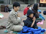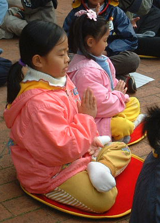 | 集体发正念 | 6岁的小弟子和怀孕9个月的妈妈 |