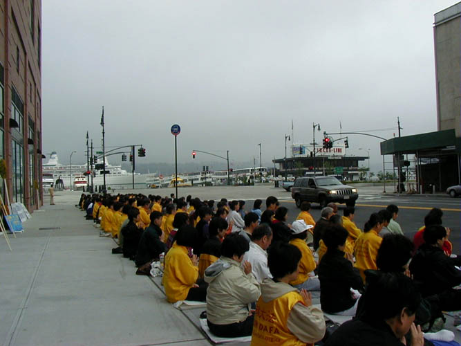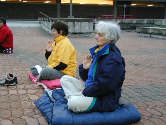 在三个时间段发正念期间,弟子们没有休息,一直交叉在炼动功和静功。大家感到这样非常好。