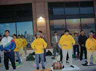 六月三日清晨,来自缅因州,新罕布什尔州,麻州,纽约上州及加州的80来位大法弟子,赶到波士顿的麻州理工学院前的大草坪,共同参加了全世界大法弟子同步铲除邪恶的伟大正法行动。