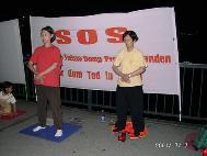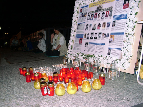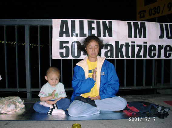 德国学员自7月9日起至7月20日每天24小时在柏林中国驻德国大使馆前炼功、洪法。