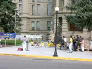 在午餐时,有一位就餐的西方男士,不仅为我们签名表示支持,还特意跑到我们的餐桌前要给我们捐款,我们表示了感谢并告诉他我们不能接受他的捐款。他告诉我们,他明白中国政府说有15名法轮功学员上吊自杀是骗人的,这让我们感到江泽民政府的谎言连这样一个小城市的美国人都蒙骗不了,更何况明白了真相的中国人民呢。