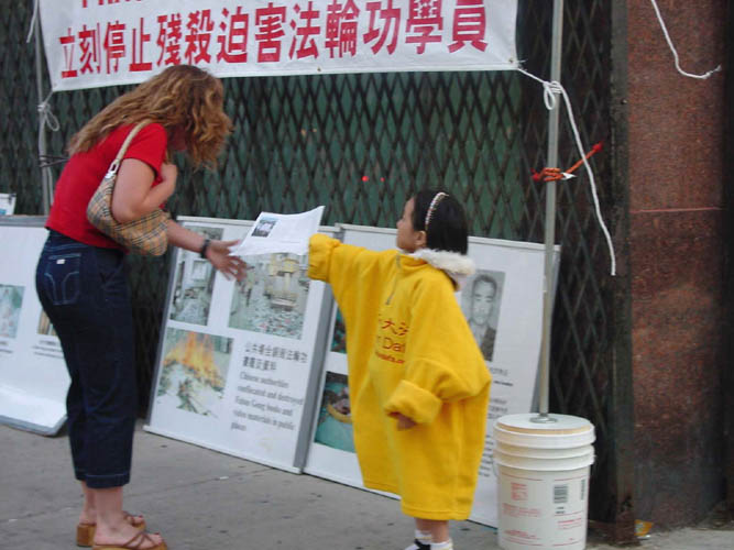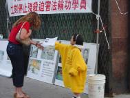 我们向过路行人,司机发送真相资料,了解了真相的人们说:“他们在用酷刑,中国(江泽民)政府太残忍了。”“无论是在美国,还是在英国,在世界各地,人们都应该有他们自己的信仰,这是基本的人权。”