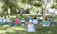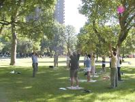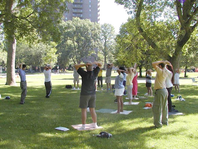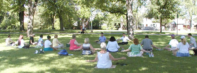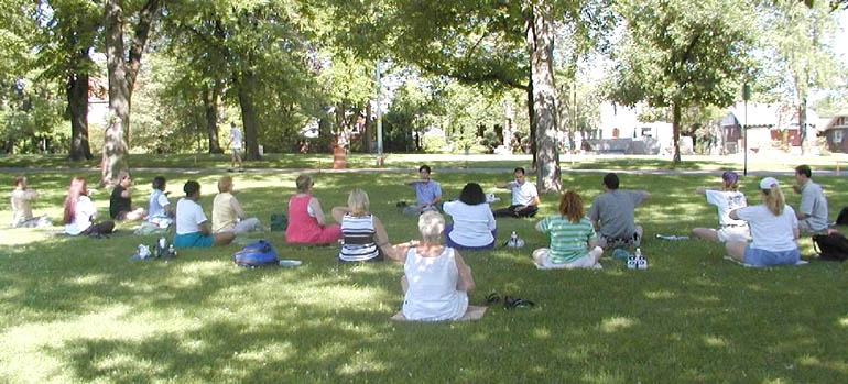 7月4日美国独立日大清早,几名丹佛学员来到丹佛市华盛顿公园。12位美国联合航空公司的职员7:30如约前来学功。大家不间歇地学了两个多小时不见疲倦。教功间隙向大家谈起江泽民集团对大法弟子的迫害,众人纷纷庆幸和赞扬美国的自由精神。一位晨炼的女士路过,也加入了学功的行列。她说,“我感到这里的能量场邀请我加入”。这期间还发生了一个小插曲:旁边晨炼的小道一位骑自行车的人被一只狗撞倒引发了狗的主人与骑车人的一场争论,开始非常激烈,粗言秽语不断,但当大家继续集中精力学功时,争吵很快止息了。一位联航的女士悟性很好,事后问到是不是我们的能量场使争吵很快平息了。学员就把《转法轮》中说的“佛光普照,礼义圆明”讲给她听,她听后很高兴。10时左右,因联航职员们还有一个会议,大家纷纷道谢离开。大家都很高兴能学炼这套有益身心的好功法。