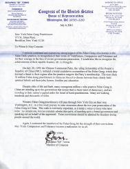 我写此信致意并表达我对法轮功(又称法轮大法)的全心支持,为了他们的信仰真善忍以及面对残酷的政府的迫害他们表现出的勇气。同时我也愿意认同他们有能力的创始人李洪志先生的成绩。