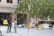 市中心的街道横平竖直,十分宽敞。我们的新闻发布会就在几条街的汇合处举行。街中心是一个战争纪念碑,为“沉默的胜利者”而造。拾级而上是纪念馆。我们在台阶上开始布置会场,把图片展板放在路边的树荫下。很多十分关心的人和我们交谈,认真听着学员在中国被迫害的事实。
