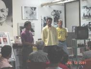 Sam先生说,他出生在一个基督教家庭,他本人也曾经是基督教徒。后来他改信了佛教。他很相信阴阳学说。他说,很多年以前,他有一个女性智慧从他的小腹部位上升并给他灵感,使他创作出了很多极富有艺术性的家具工艺并在世界上产生了影响。他还给学员看了他的作品的照片。这些作品确实很有创造力。一个学员问他为什么停止了创作。他说,后来他的女性智慧消失了,再也没有创作灵感了。他说,现在我已上了年纪,我的佛性出来了,我很想为人们做好事。一个学员说,看起来您有很多朋友。Sam先生说,我认识很多人,但真正的朋友是要互相信任,心心相通的。他有说,我很信任法轮功的人,他们都是好人。我愿意帮助他们做任何事情。最后,他还开了一句玩笑说,法轮功的学员都象是军人,不会幽默和玩笑。无论人们把话题扯到哪里,他们都会把话题拉回到法轮功上来,而且态度非常严肃。