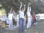 在周日的步行之前,基特利的马库斯.盖尔同其他法轮功学员一起在约翰保尔琼斯公园打坐落基山新闻:法轮功的哲学原理平和