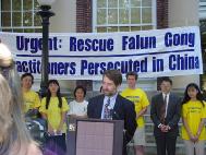国内的法轮功学员经受了种种迫害,今天当我们站在市政厅前面,我有一点强烈的愿望:我想多做点什么好对他们有所帮助,即使只是很小的事情。