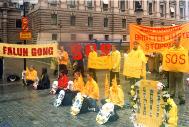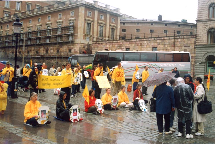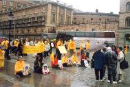 瑞典学员集体炼功抗议江泽民虐杀大法弟子