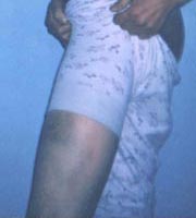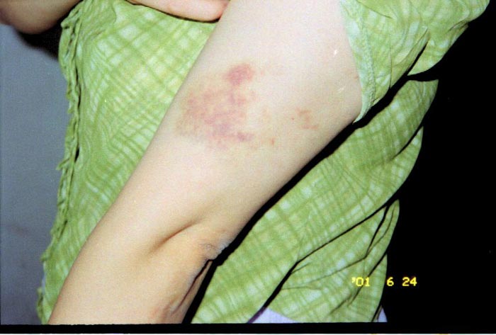 【明慧网2001年7月3日】 2001年6月21日凌晨赵雅云身亡的消息被传知其家属,家属闻讯见赵雅云遗体:头发零乱不堪,双眼窝青紫,眼微睁,人中有小手指甲大小的掐痕,牙关紧闭,脸上尚有被打过的五指印,整个脸浮肿,颈上有一轻一重两道勒痕,肩胛青,胳臂有伤,后腰大面积淤紫。