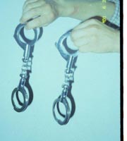 一个女大法弟子,因去天安门证实大法被关押和被迫害。 在没有法律依据的情况下,公安把她戴上脚镣强行送到呼和浩特女子劳教所。由于她在劳教所一直坚持炼功,被三大队的刘队长拿电棍一直从走廊电回宿舍,后来又被常红副队长下令把她脚不离地上吊铐,吊起来2个小时,两手臂青紫冰凉、麻木,之后又上吊铐吊了一整天。后经检查发觉她已经怀孕几个月了。但人性全无的恶警仍对她施尽了折磨,逼她卸煤,装卸牛粪、翻地,没有农活儿时每天包装1万多双卫生筷。这样,又被关押了十几天后戴上手铐才把她送回家。