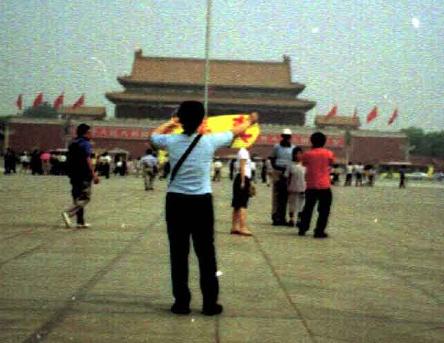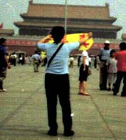 报道说,许多进行抗议的法轮功信众都象这位信徒一样,强调法轮功受到了曲解、打压,他们要向世人说明真象。然而,抗议者往往连标语横幅都来不及打开就被警察抓住带走了。